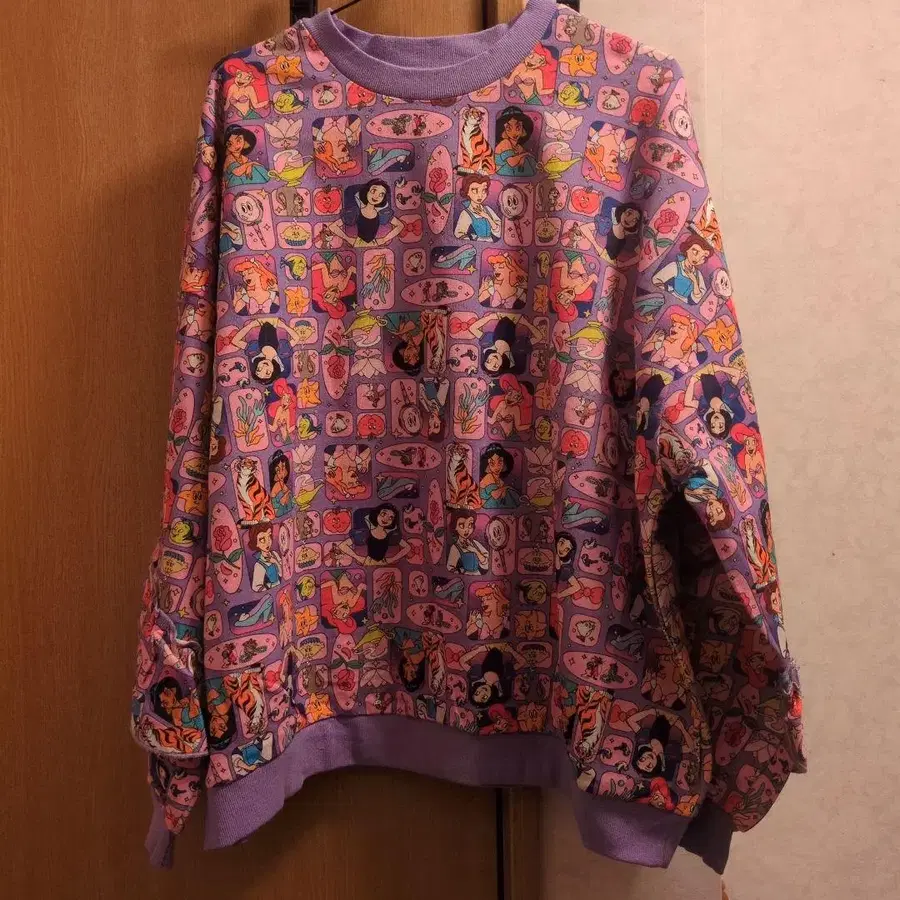 디즈니 프린세스의 컬러풀한 프린트가 특징인 프릴 맨투맨. - 디자인: 디즈니 프린세스 캐릭터가 그려진 컬러풀한 프린트 - 색상: 퍼플 - 브랜드: LINK@ (리틀 콜라보레이션) - 소매: 프릴이 달린 볼륨 소매 - 스타일: 캐주얼 방문해 주셔서 감사합니다. 얼룩, 찢김, 냄새 등 - 없음