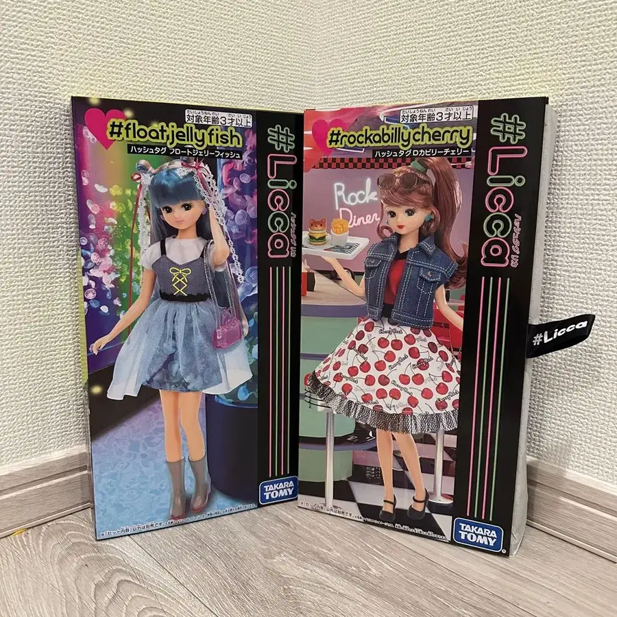 리카짱 인형 2체 세트입니다. 해시태그 플로트 제리 피쉬 해시태그 로카빌리 체리 의 2체입니다. 미개봉 새상품인 귀여운 리카짱 인형입니다 ^_^ 바로 발송 가능합니다 ♪ #floatjellyfish #rockabillycherry