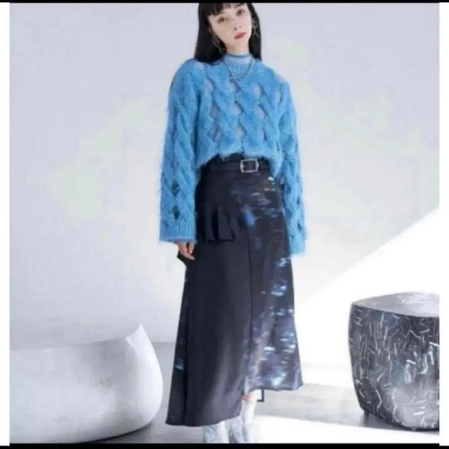 오리지널로 흐릿한 듯한 플라워 무늬를 사용한 고급 스커트입니다.