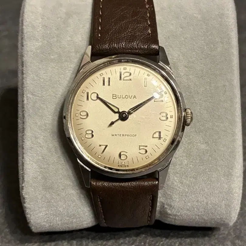 ★ 컬렉션 정리를 위해 판매합니다. 브로바 라운드 케이스 수동 와인딩입니다. 아메리칸 브랜드다운 개성 있는 디자인과 수동 와인딩만의 기계식의 매력이 매력적입니다. 부담 없이 빈티지 느낌과 기계를 조작하는 즐거움을 맛볼 수 있는 한 점입니다. - 브랜드: Bulova 브로바 수동 와인딩 아라비아 다이얼 - 다이얼 색상: 아이보리 - 벨트 소재: 가죽(비순정) - 벨트 색상: 브라운 - 특징: 플라스틱 방품 작동 - 양호 케이스/직경 - 약 34mm 방문해 주셔서 감사합니다.