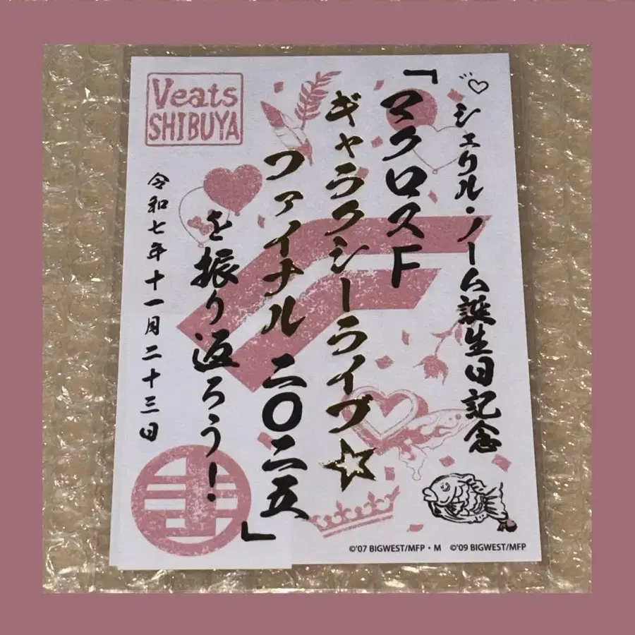 마크로스 F 갤럭시 라이브 파이널 2025 셰릴 노움 탄생 기념 고슈인입니다. 미사용 새상품입니다. 골판지로 접힘 방지 및 opp에 넣어 침수 방지 후 발송해 드립니다. 셰릴 마크로스 이벤트 한정판