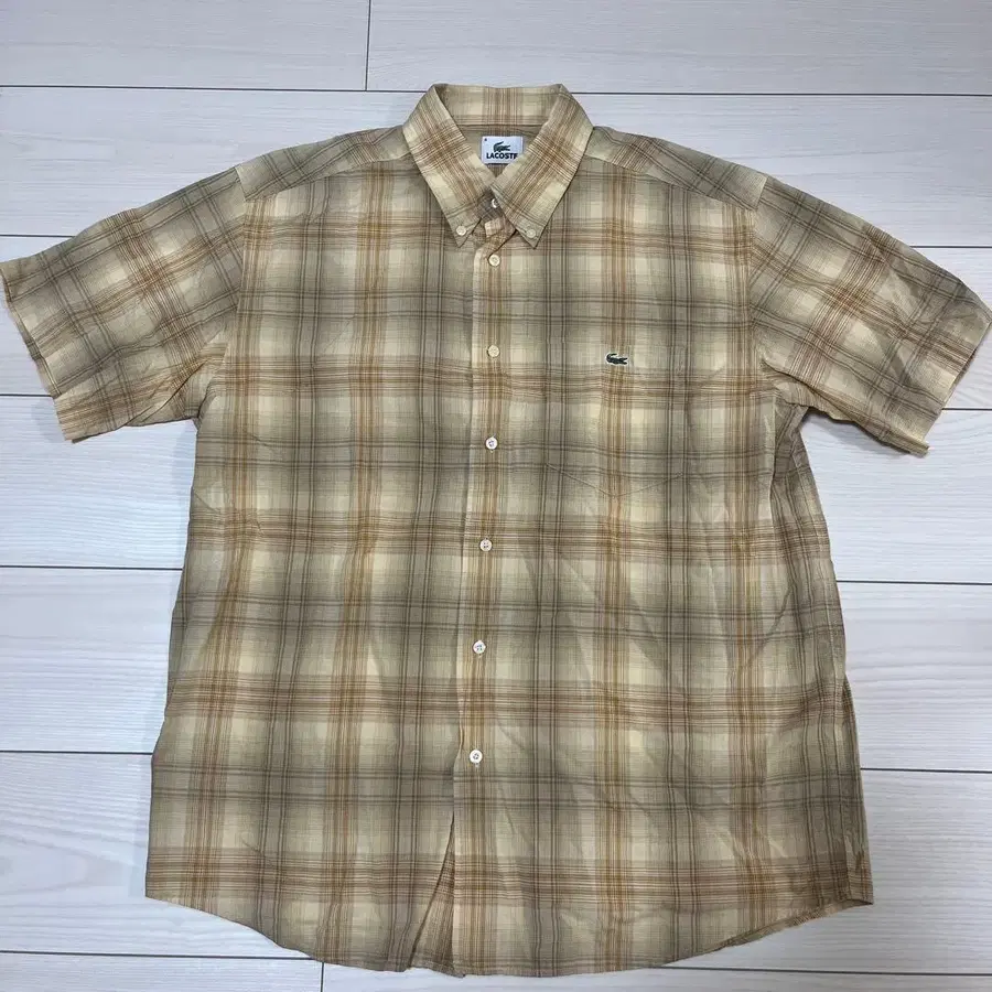• LACOSTE 화이트 체크 무늬 반팔 셔츠 L 사이즈
