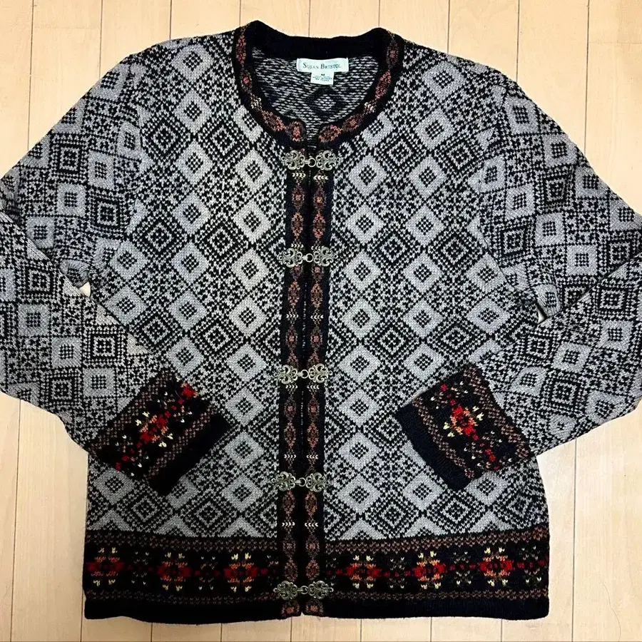 70s 빈티지 노르딕 무늬 메탈 버튼 니트 가디건 올 패턴