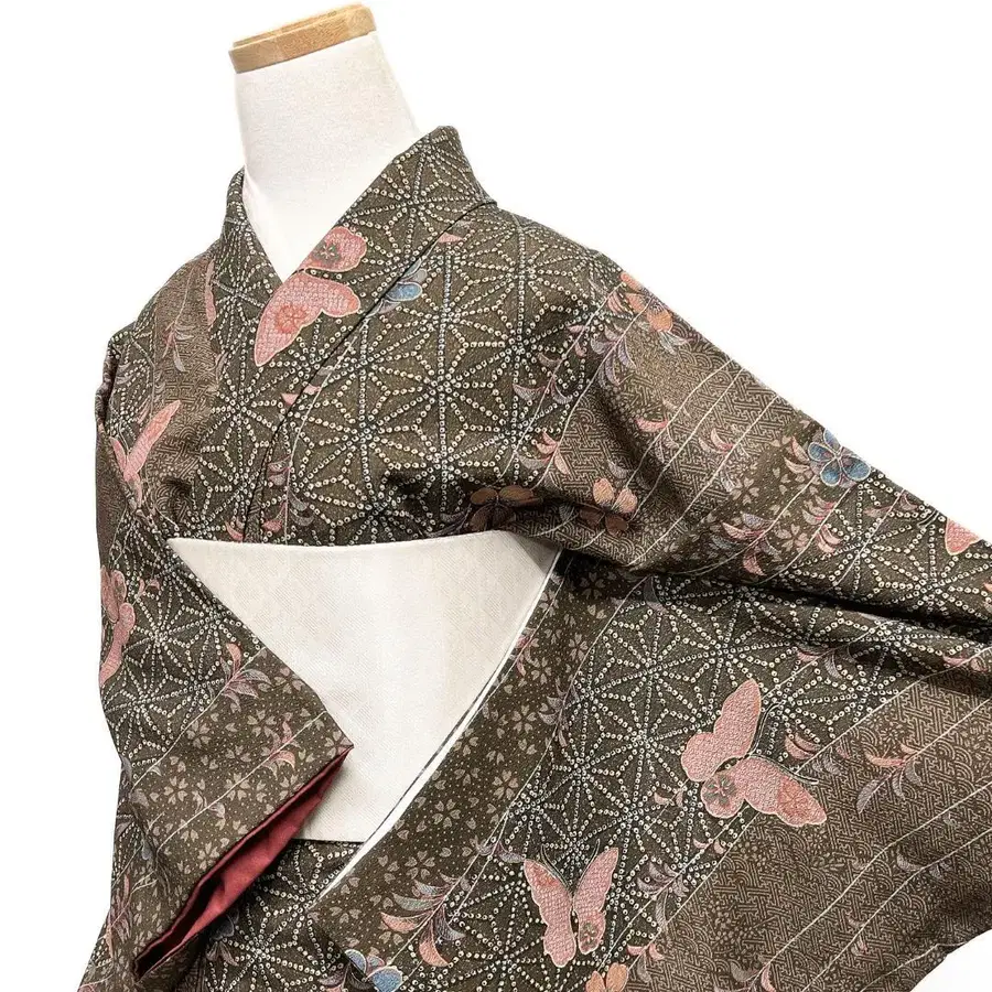 코몬 워셔블 기모노 나비 벚꽃 매실 린넨 문양 기모노 123b d ms
