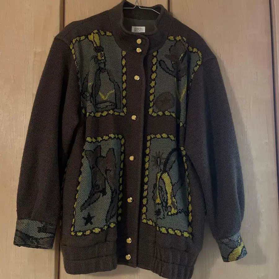 구제 의류 매장에서 구매한 가디건입니다. 쁘띠 넥 디자인으로 카우보이 패턴이 귀엽습니다. 디즈니 코디에도 추천합니다. - 색상: 브라운 - 디자인: - 버튼: 골드 컬러 버튼 - 스타일: 가디건 - 소재: 니트 방문해 주셔서 감사합니다.