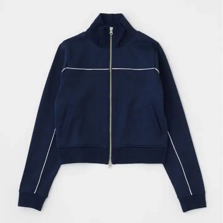 네이비 색상의 집업 트랙 자켓, 화이트 파이핑으로 스타일리시함. - 색상: 네이비 - 디자인: 집업, 크롭 기장 - 스타일: 테일러드 자켓 - 특징: 화이트 파이핑 디자인 프리 사이즈 이곳에서 구매하여 2회 정도 착용했습니다. 중고품에 이해가 있는 분의 구매 부탁드립니다. 정가 8998