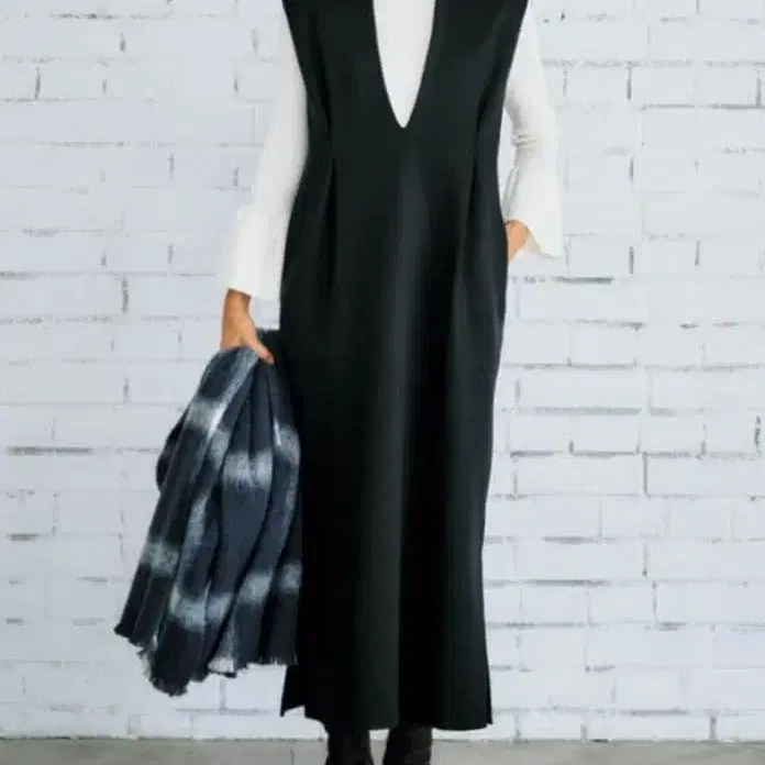 깊게 들어간 V넥과 I라인이 스타일업되어 보입니다.