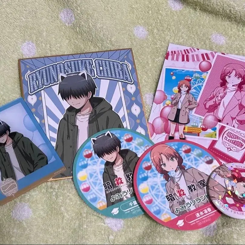 암살교실 요미우리랜드 콜라보 굿즈입니다. 내용물 확인을 위해 개봉했습니다. 치바 류노스케: 미니 색지, 아크릴 카드, 코스터 하야미 린카: 코스터, 캔뱃지, 엽서 캐릭터 단위 낱개 판매, 가격 인하 가능합니다. 댓글 부탁드립니다.
