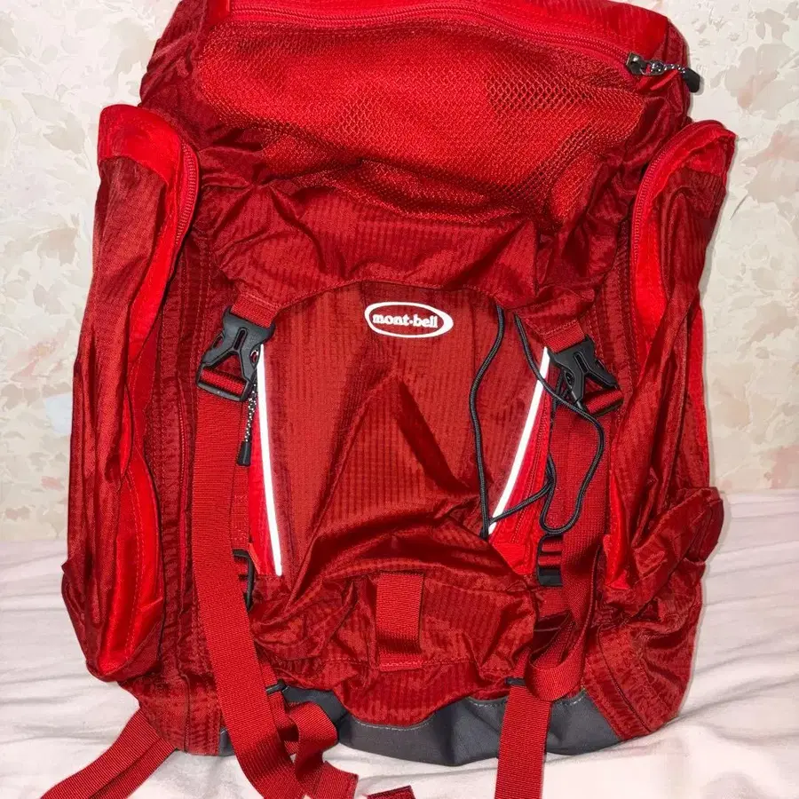 메쉬 포켓과 조정 가능한 스트랩을 갖춘, 넓은 수납 공간의 레드 백팩. - 브랜드: mont-bell - 색상: 레드 - 특징: 메쉬 포켓, 조정 가능한 스트랩 - 내부 구조: 넓은 수납 공간, 코드 포함 - 용도: 아웃도어, 하이킹 방문해 주셔서 감사합니다.