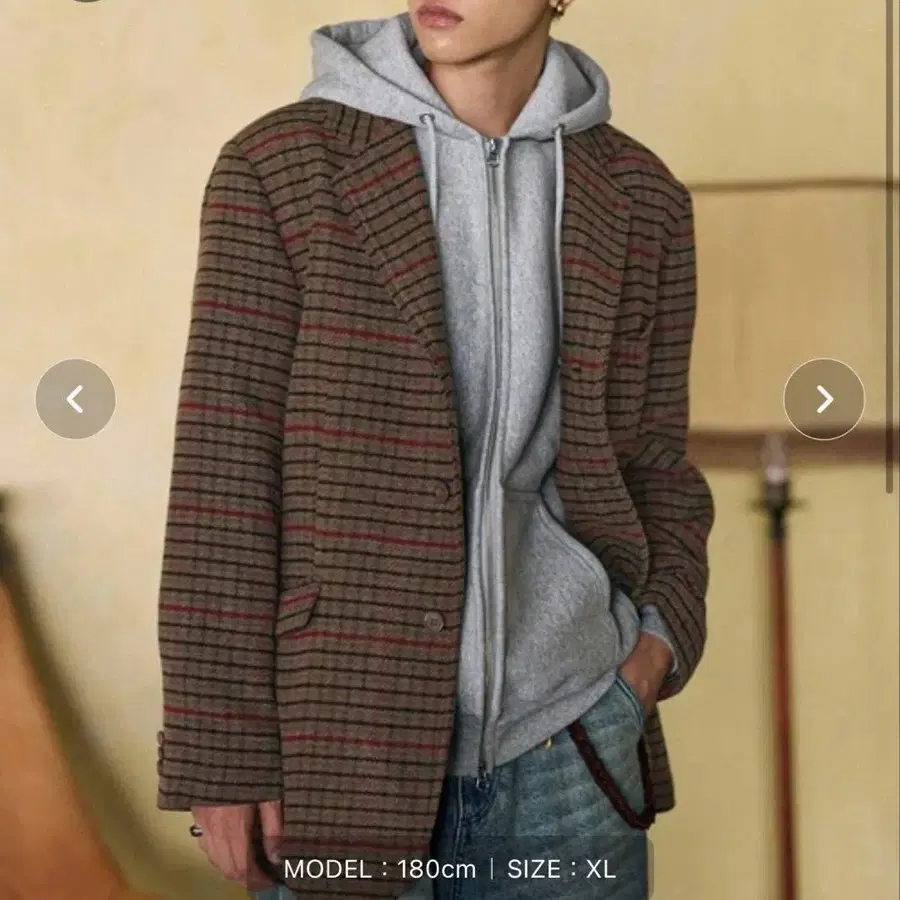 클래식 트위드 체크 테일러드 자켓, 브라운 컬러로 스타일리시한 인상을 줍니다.