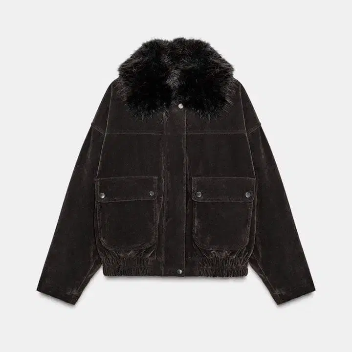 자동 번역되었어요. 원문보기ZARA의 스웨이드 느낌 소재에 옷깃에 인조 모피가 달린 자켓