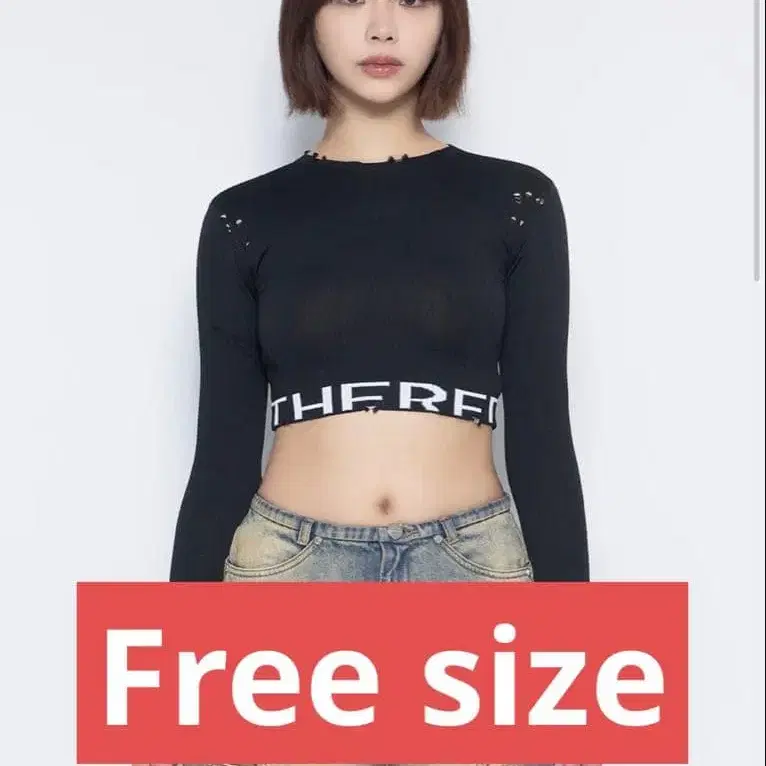 데미지 가공이 들어간 블랙 크롭 긴팔 상의. - 색상: 블랙 - 디자인: 크롭 기장 - 특징: 데미지 가공 - 로고: THE RED - 스타일: 긴팔 - 방문해 주셔서 감사합니다. 사이즈 - FREE SIZE