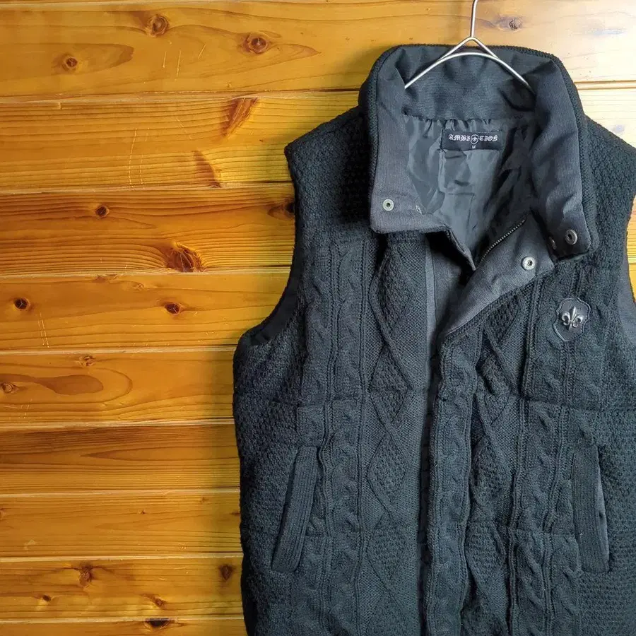 원포인트 로고 빈티지 케이블 자수 디자인 니트 베스트