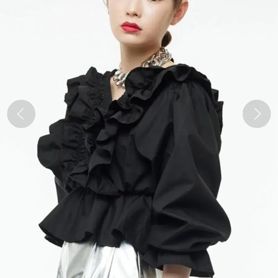 narcissus 프릴 블랙 긴팔 블라우스