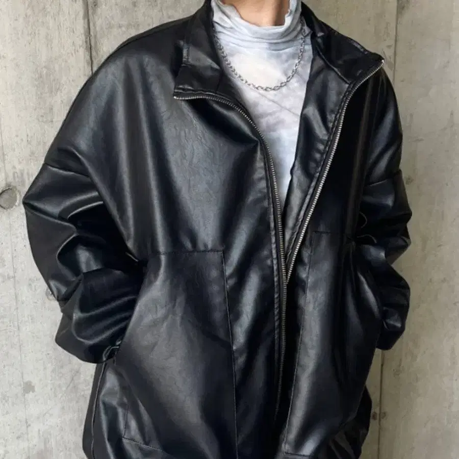 페이크 레더 자켓 숏 기장 카키 한국 F 사이즈 드로스트 W 지퍼