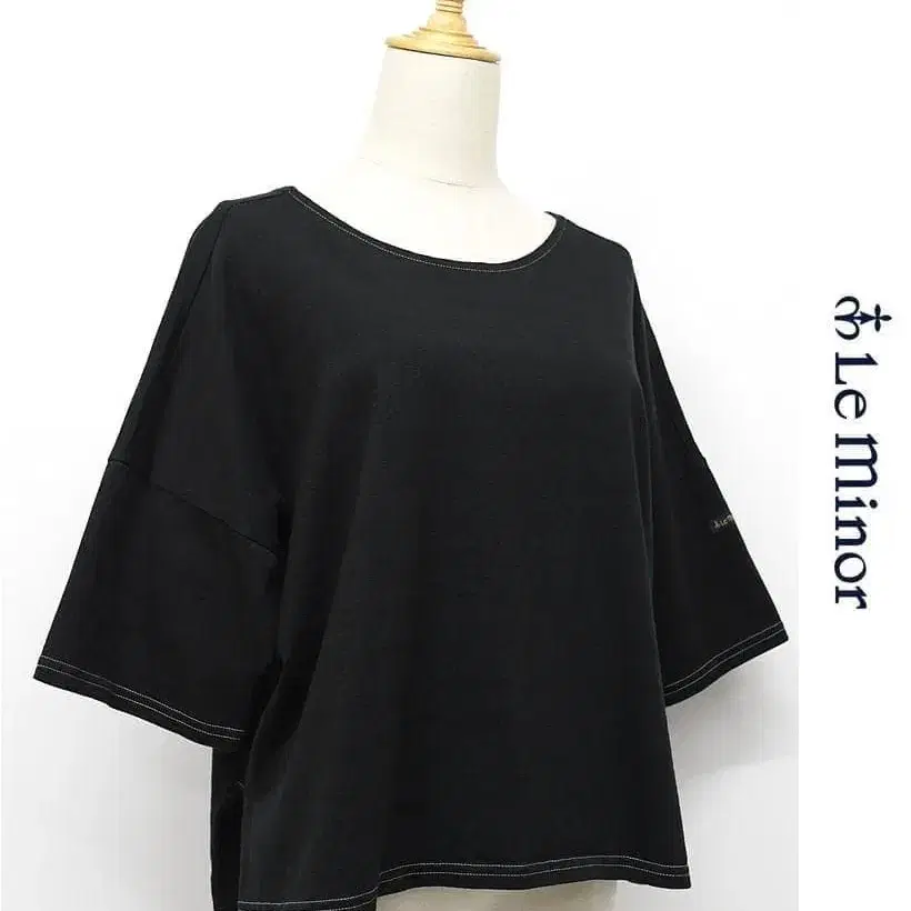 F467/새상품급 프랑스제 LEMINOR 바스크 셔츠 와이드 티셔츠 컷소 드롭 숄더 블랙 염색 백 V넥 보더 1 S~M 블랙