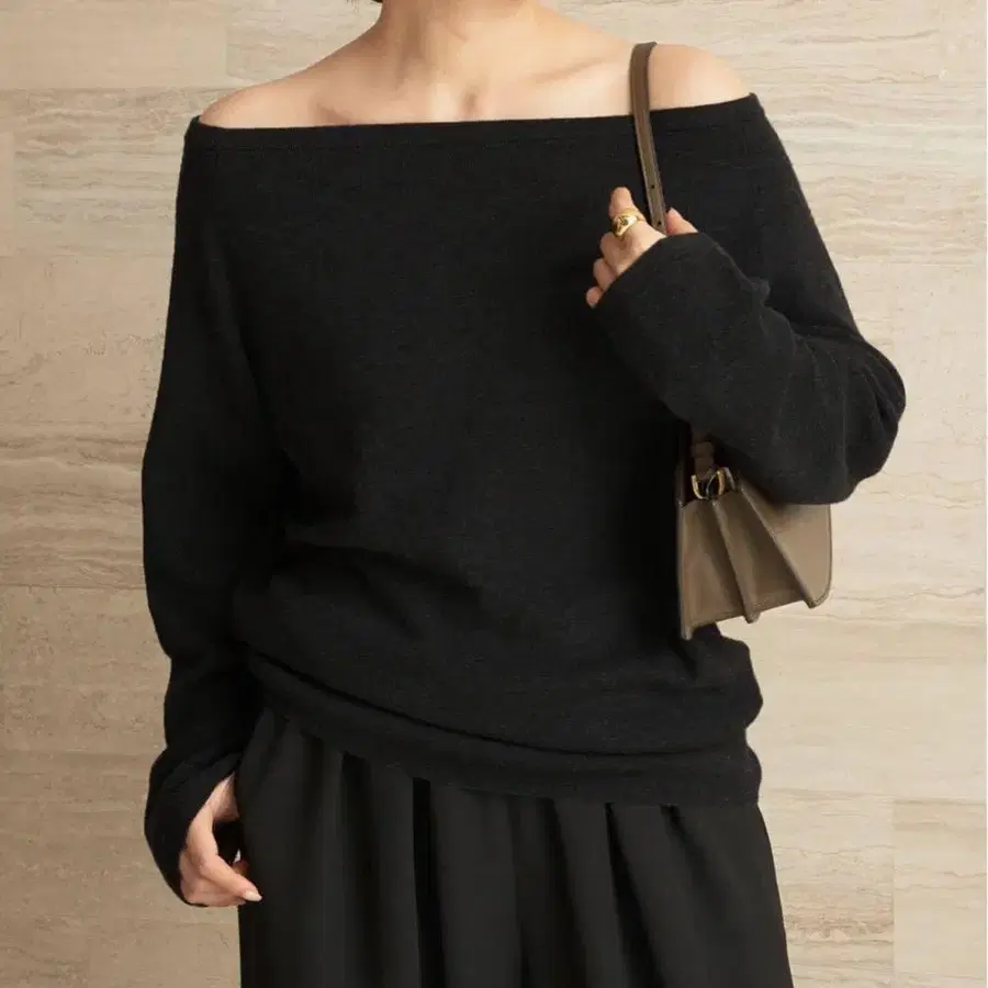 오프숄더 긴팔 니트 스웨터 슬림핏 EGGKA