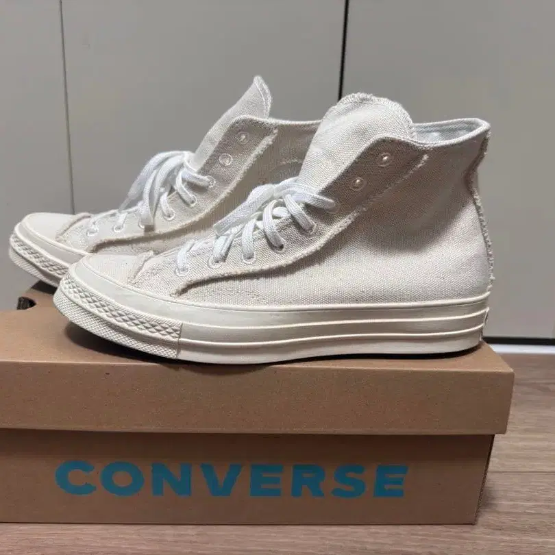 거의 새상품입니다! Converse Chuck 70 High 'Egret' - 167749C 캔버스 소재의 화이트 하이컷 스니커즈. - 브랜드: CONVERSE - 색상: 화이트, 아이보리 - 스타일: 하이컷 - 소재: 캔버스 방문해 주셔서 감사합니다.