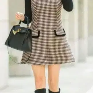 sheller 셰리에 원피스 하운드투스 체크 패턴 벨로아 파이핑 미니 드레스 두 번 착용 후 클리닝했습니다. 개인 보관임을 이해하시는 분만 구매 부탁드립니다. sheller 셰리에 벨로아 파이핑 미니 드레스