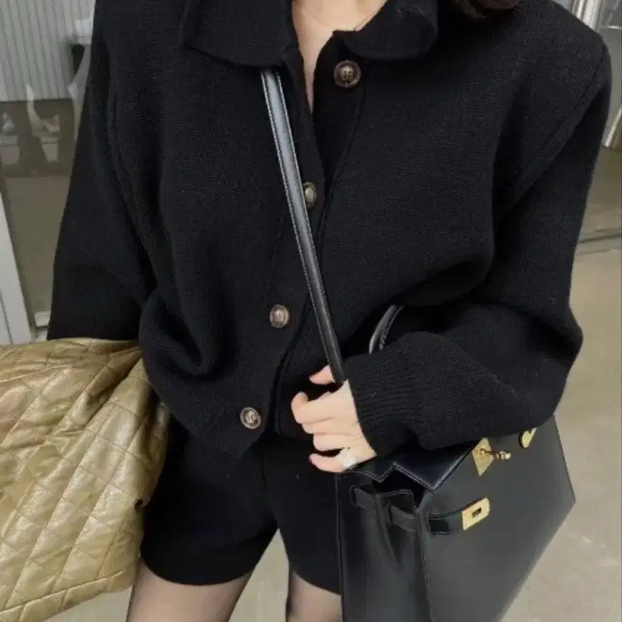 색상 - 블랙 계열 계절 - 가을/겨울 폴로 옷깃 니트 가디건 & 니트 숏팬츠 셋업 1만 엔 정도에 구매했습니다. 원단도 도톰해서 따뜻합니다. 시착만 한 상품.