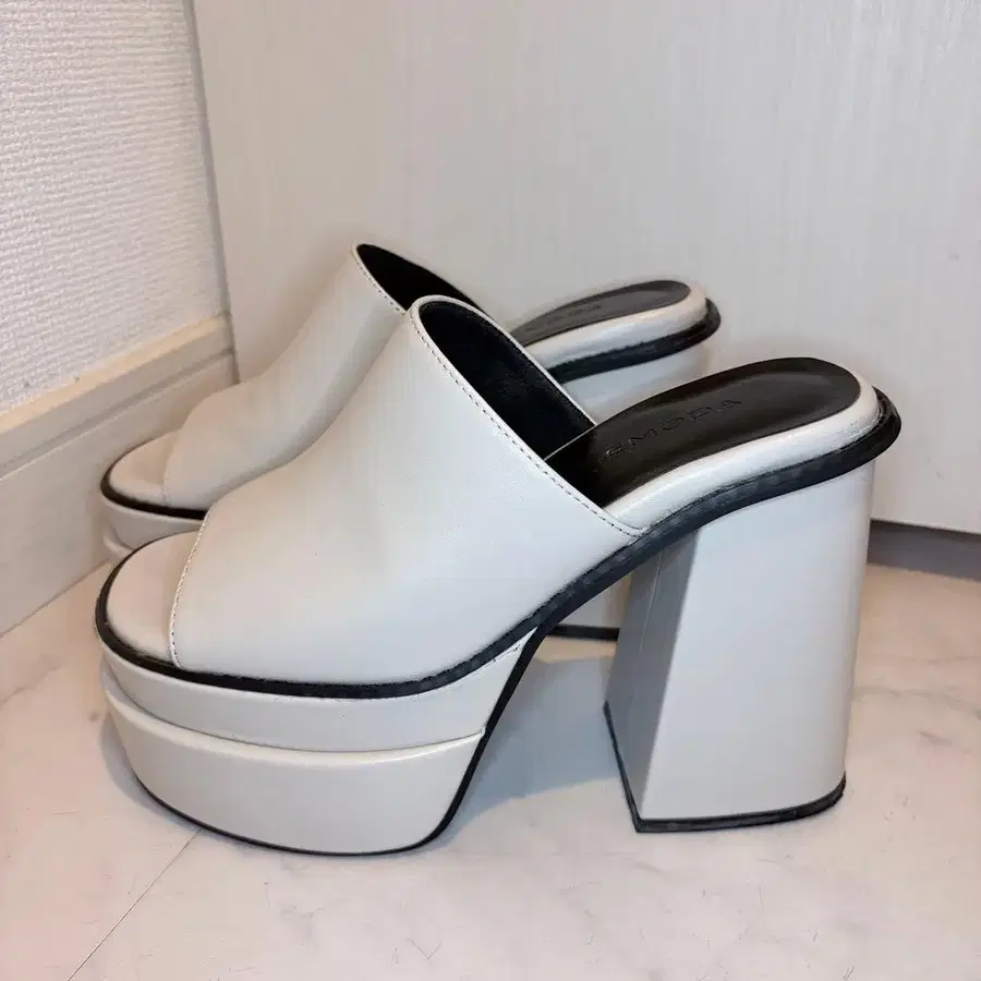 정가 14,080엔 상태는 사진을 확인해주세요. 비교적 깨끗한 상태입니다! M: 힐 12.5cm / 23.5cm / 폭 약 9cm / 무게 약 1216g 통굽 샌들 화이트 화이트 에모다