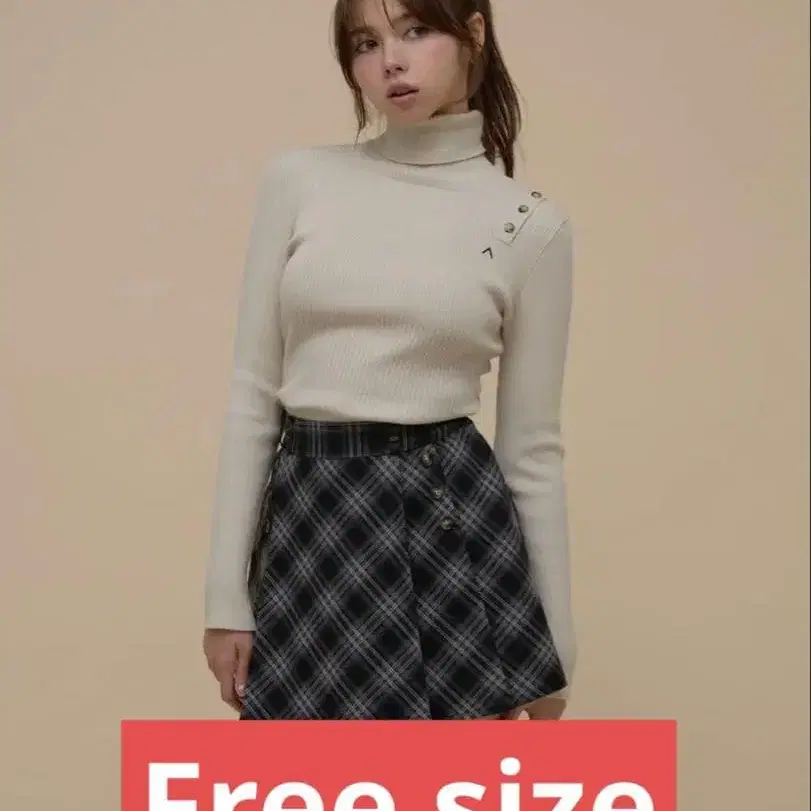 크림색 터틀넥 니트와 체크 무늬 플레어 스커트 세트. - 색상: 크림색 - 디자인: 터틀넥 - 소재: 리브 - 스타일: 캐주얼 - 스커트 색상: 블랙, 그레이 체크 - 스커트 디자인: 버튼이 달린 플레어 스커트 - 스커트 소재: 체크 무늬 방문해 주셔서 감사합니다. 사이즈 - FREE SIZE
