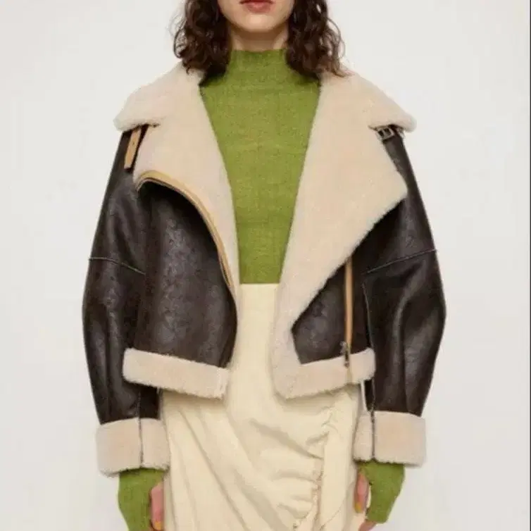 me+em select B-3 숏 보아 플라이트 무스탕 자켓