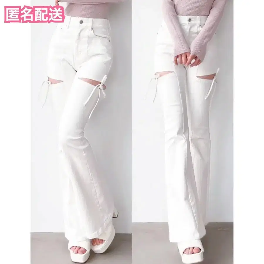 GRL 사이드 컷 아웃 리본 플레어 데님 팬츠 [fo2242] S