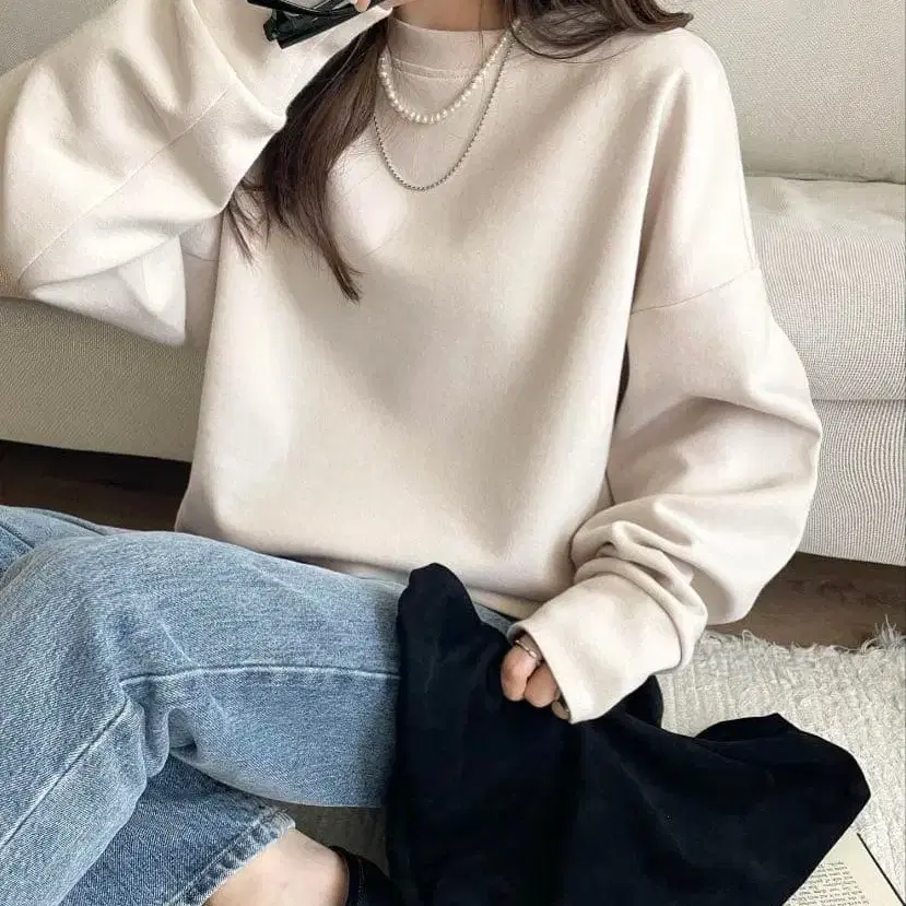 면 혼방의 두꺼운 맨투맨 소재