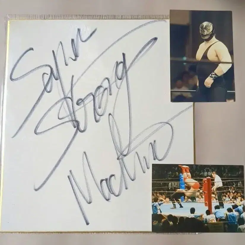 친필 사인 색지 + 당시 사진 2장 세트