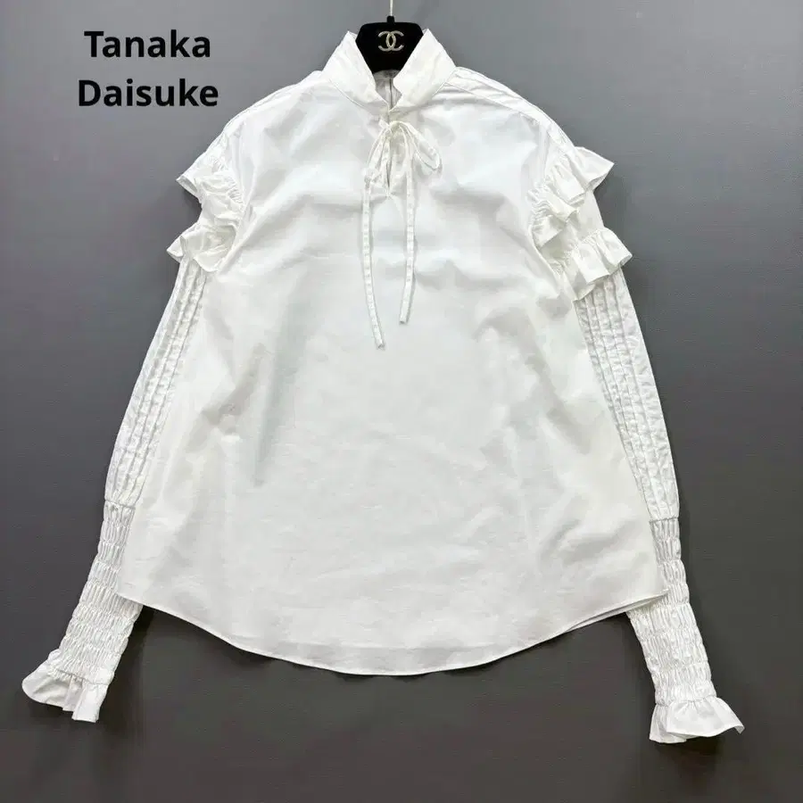 TANAKA DAISUKE 21AW. 구축과 덧없음이 공존하는, 기원과 같은 블라우스. 아트 피스처럼 물결치는 소매, 숨 쉬는 실루엣. 입을 때마다 의식이 윤곽을 모호하게 하고, 일상이 시가 된다.
