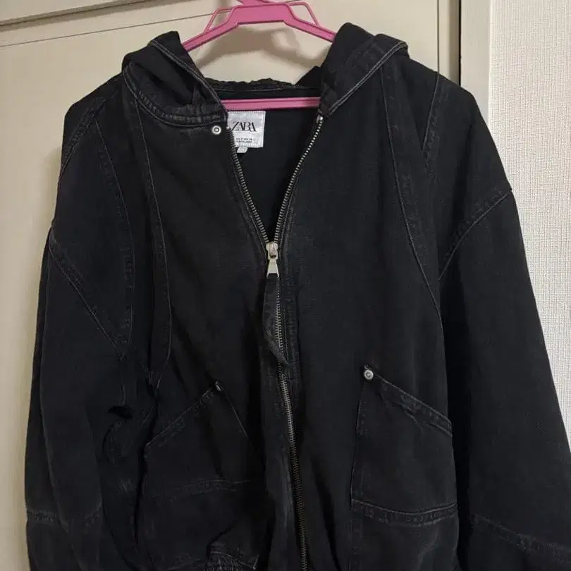ZARA 블랙 후드 부착 데님 자켓 사이즈 38