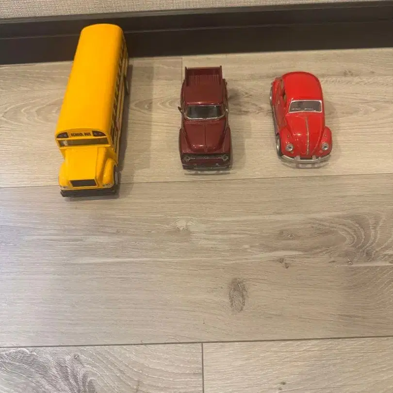 부모님 댁에서 컬렉션으로 모아왔던 것으로 가족이 소유했던 물건입니다. ⭐︎ Volkswagen 비틀 ⭐︎ 킨스마트사 제조 1956년 포드 F-100 픽업 트럭 ⭐︎ 스쿨 버스 문 등이 개폐 가능합니다. 빨간색 비틀과 옐로우 컬러 버스는 풀백 방식으로, 뒤로 당기면 움직입니다. 트럭의 사이드 미러 한쪽이 떨어져 나갔으며, 떨어진 미러도 함께 드립니다. 이미지 추가나 질문 등은 자세하지 않지만 댓글로 부탁드립니다.