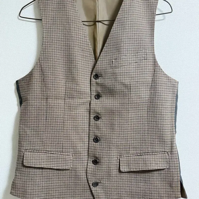 체크 무늬의 그레이 수트 베스트, 사이즈 S, 스타일리시한 디자인.