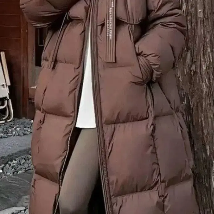 브라운 색상의 후드 부착 롱 윈터 자켓, 캐주얼 스타일에 최적입니다.