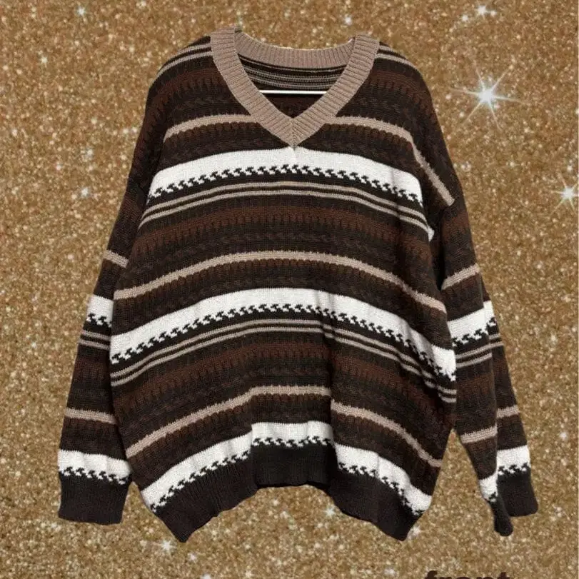 브라운 보더 V넥 스웨터 니트