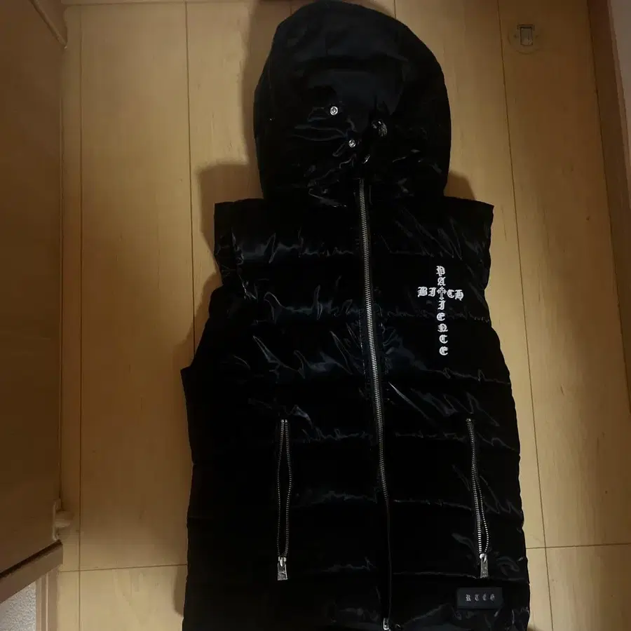후드 부착 블랙 다운 자켓, 뒷면에 [ ERUPTION ] 자수 있음. - 색상: 블랙 - 디자인: 후드 부착, 지퍼 부착, 포켓 있음 - 소재: 다운 자켓 방문해 주셔서 감사합니다. 사이즈 - S