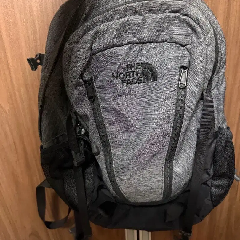 메쉬 패널과 조정 가능한 스트랩이 있는 그레이 백팩.