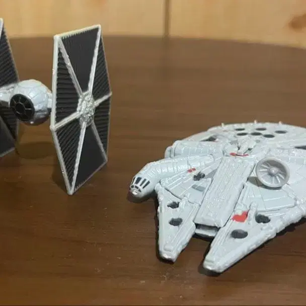 스타 워즈 미니 피규어 세트, 밀레니엄 팔콘과 TIE 파이터 조합. 약간 변색 있습니다.
