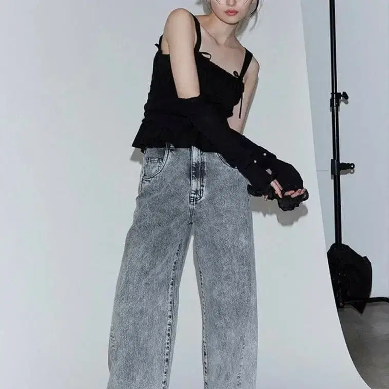 미사용 새상품 FRAY I.D 와이드 스트레이트 데님 그레이