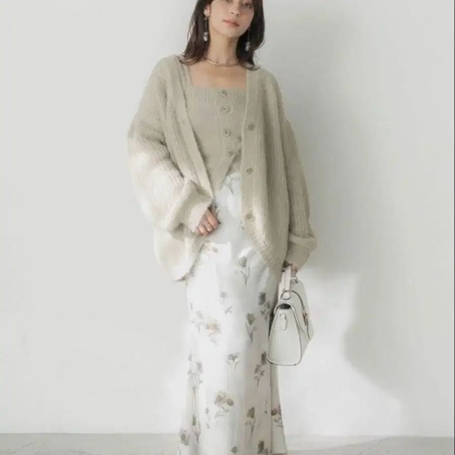 화이트 계열의 꽃무늬는 코디의 주인공으로서 화려함을 더해줍니다.