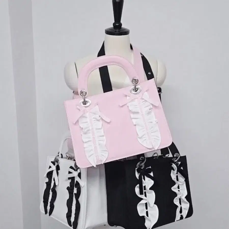 릴리릴리 프릴 캔버스 리본 북 미니 토트백