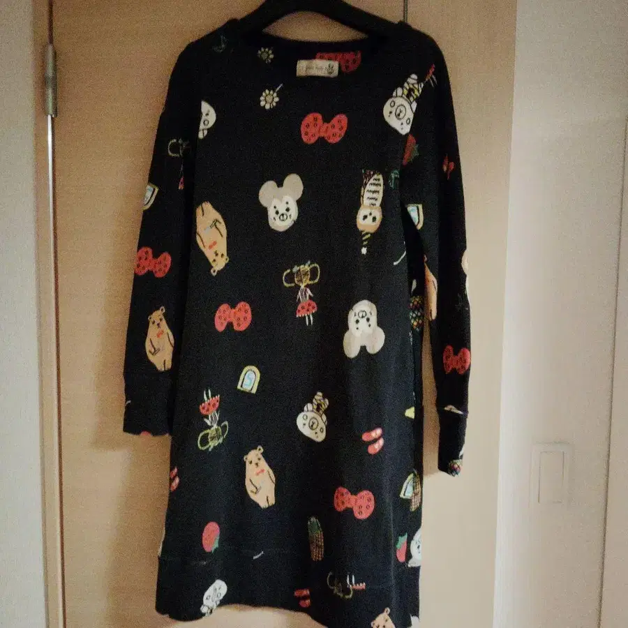 franche lippee의 귀여운 캐릭터 패턴 블랙 긴팔 튜닉.