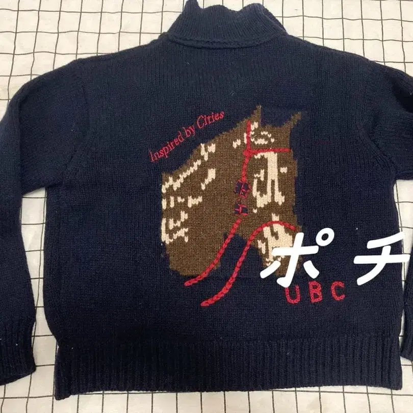 말 자수가 특징인 네이비 니트 가디건. - 디자인: 말 자수가 놓인 디자인 - 색상: 네이비 - 소재: 니트 - 포켓: 앞면에 2개의 포켓 있음 - 버튼: 앞면에 5개의 버튼 - 옷깃 디자인: 카라 부착 디자인 방문해 주셔서 감사합니다.