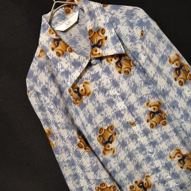 90년대 빈티지 귀여운 베어 패턴 버튼 겉옷 Y2K 여성빈티지