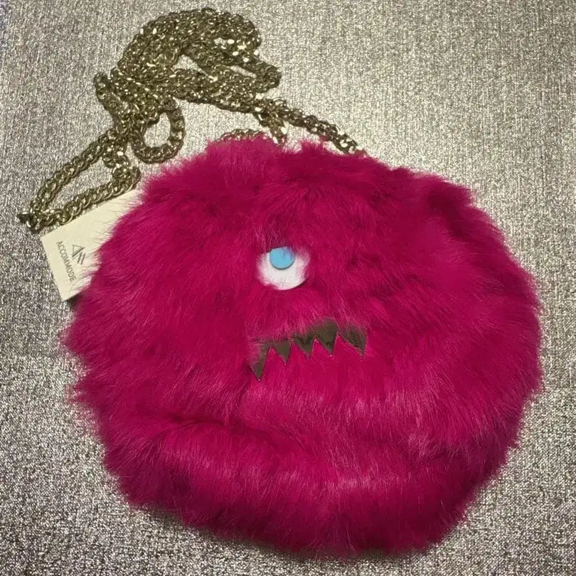 퍼 소재의 핑크 몬스터 숄더백, 지퍼 달린 포켓 포함.