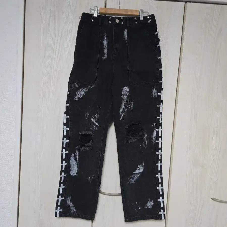 컷 아웃 리본 데님 팬츠