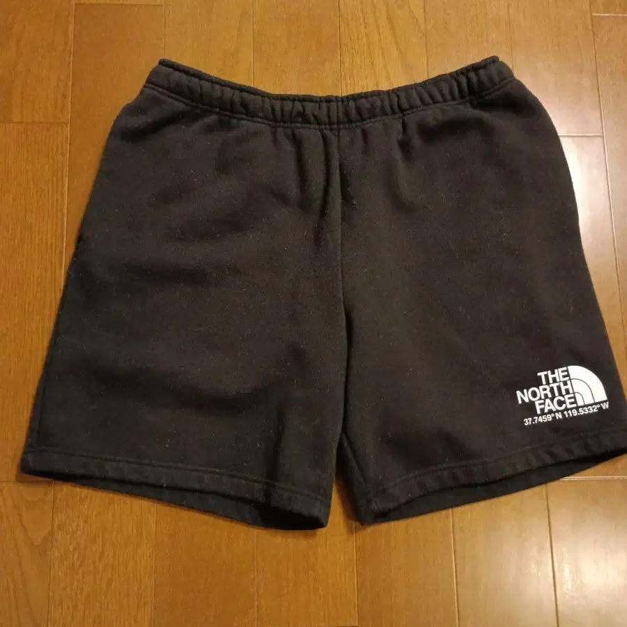 맨투맨 소재의 블랙 숏팬츠, THE NORTH FACE 로고 포함.
