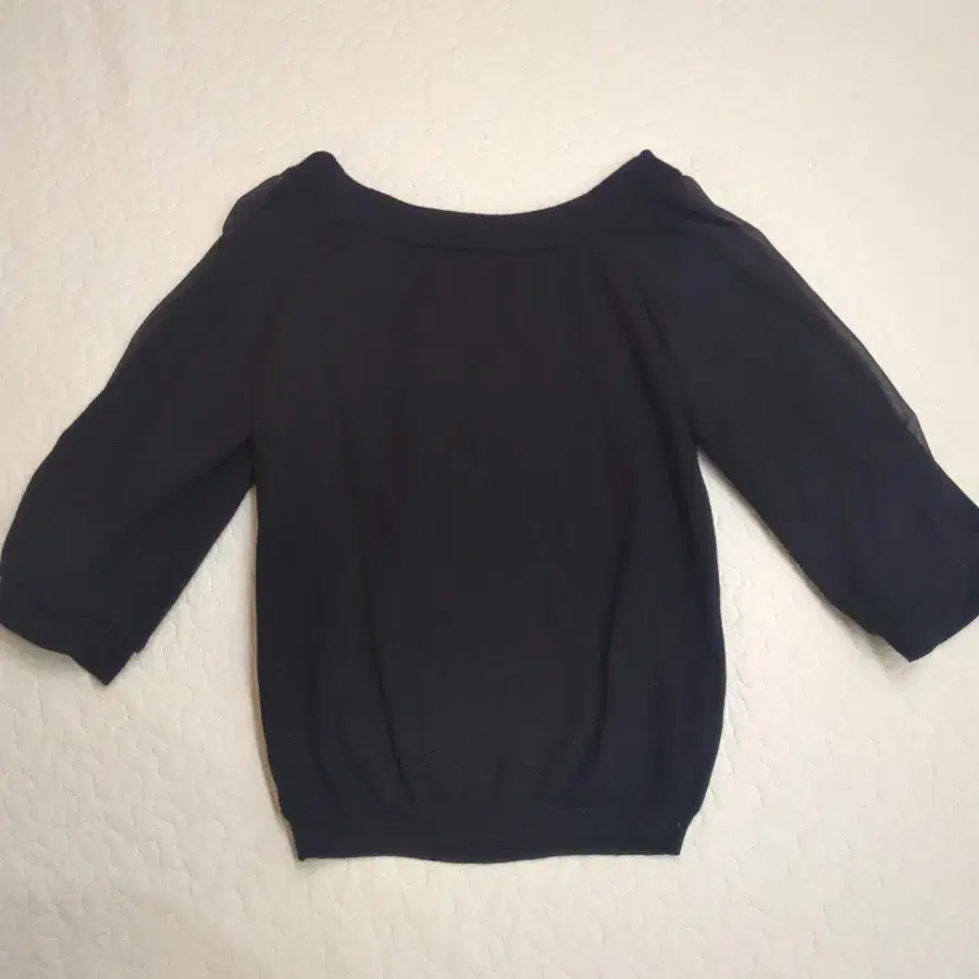 CAWAII 블랙 세미 오프숄더 시스루 소매 5부 니트