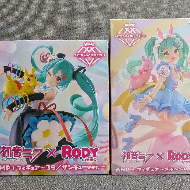 하츠네 미쿠 ✕ RODY AMP+ 피규어 ~39/산큐 ver. ~ ~메르헨 ver. ~ 피규어 2종 세트 미개봉품이지만, 프라이스 경품이므로 초기 상자의 찌그러짐이나 흠집 등은 양해 부탁드립니다. 개인 보관이므로 이해해 주시는 분의 구매를 부탁드립니다. 완충재로 포장한 후 간편 포장으로 발송할 예정입니다. 즉시 구매 OK입니다. 낱개 판매는 생각하고 있지 않습니다. 잘 부탁드립니다.